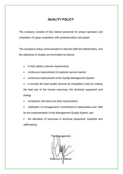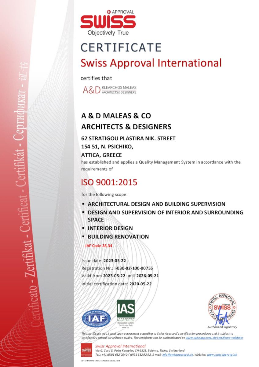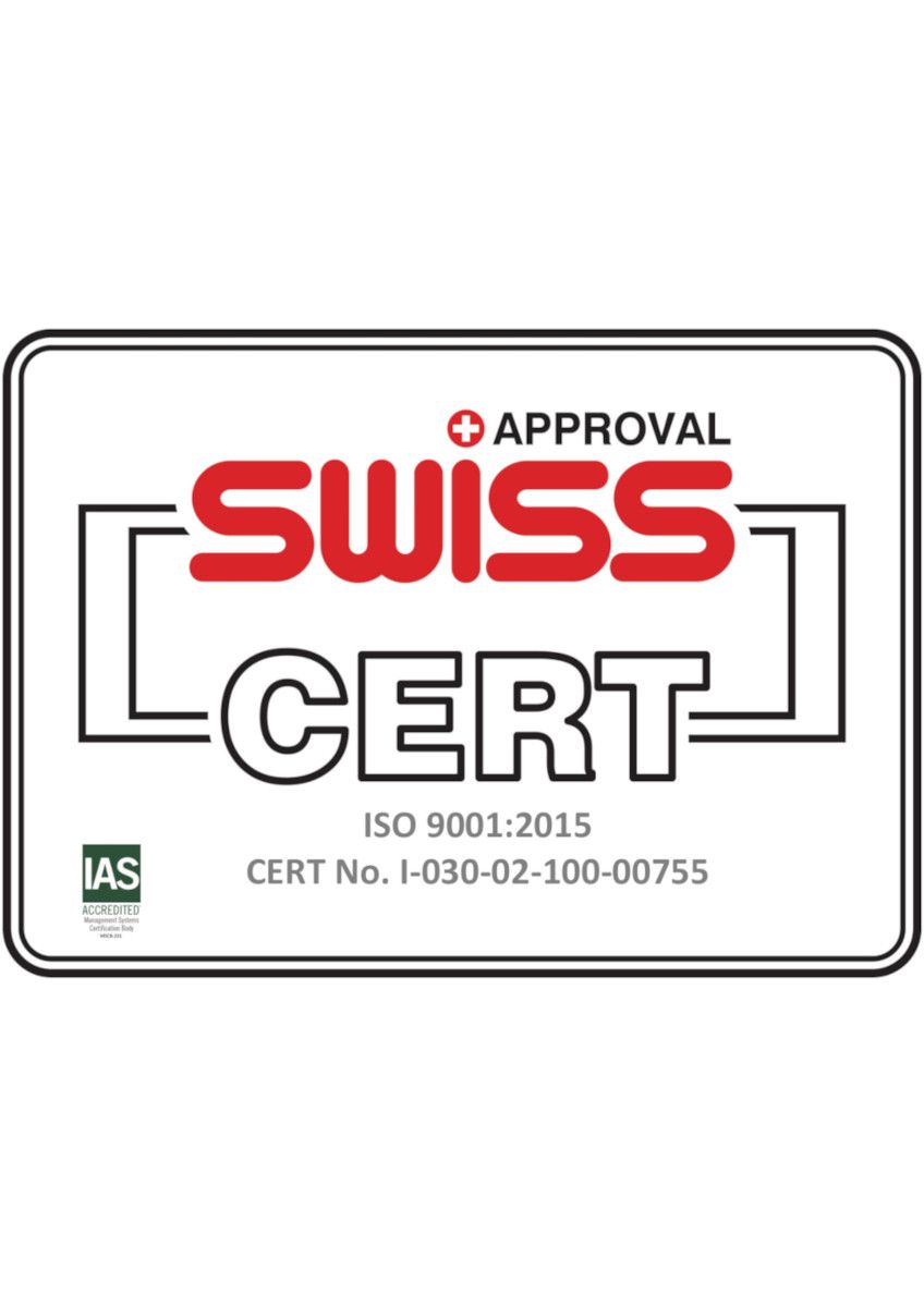 The company has developed and applies a certified Quality Management System in line with ISO 9001:2015 (certification by SWISS APPROVAL) since 2017.