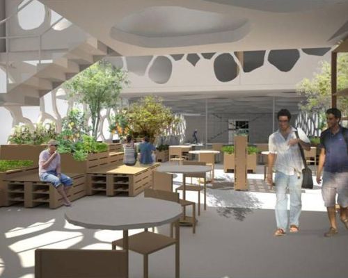 Τα βασικά υλικά που χρησιμοποιήθηκαν για την καινούργια κατασκευή είναι ατσάλι, σίδερο, ξύλο και γυαλί ενώ τα έπιπλα έχουν σχεδιαστεί από ανακυκλώσιμα υλικά. Υποστηρίζοντας την πράσινη αρχιτεκτονική, διαφανή φωτοβολταϊκά γυαλιά και ανεμογεννήτριες έχουν εγκατασταθεί στο δώμα, ενώ SDF δάπεδα έχουν τοποθετηθεί στους πολυχώρους, για την ελάχιστη κατανάλωση καυσίμων.