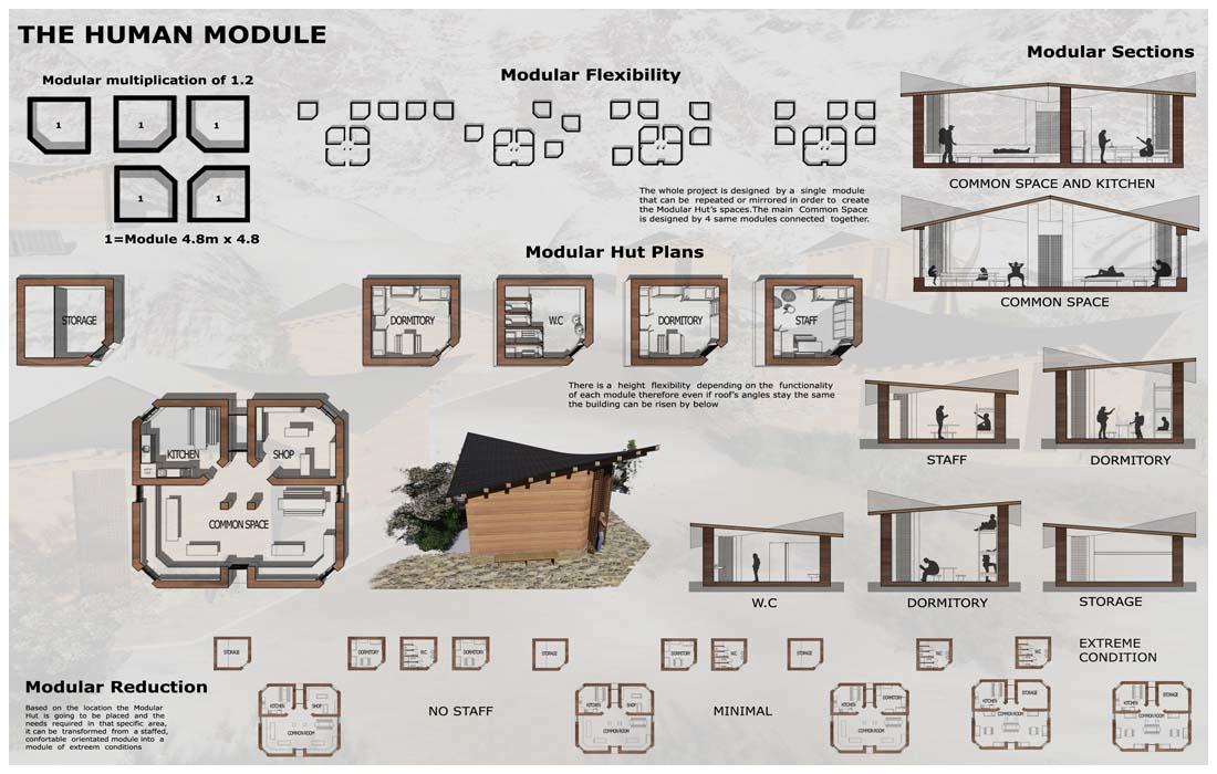 Το επαναλαμβανόμενο μόντουλο που χρησιμοποιείται είναι το πιο σημαντικό χαρακτηριστικό του καταφυγίου, προκειμένου να επιτρέπει ευελιξία και λειτουργικότητα σύμφωνα με τις απαιτήσεις του χώρου, δεδομένου ότι η πρόταση θα πρέπει να εφαρμόζεται σε διάφορα σημεία κατά μήκος των μονοπατιών των Ιμαλαΐων. Με τον τρόπο αυτό το καταφύγιο αυτό θα μπορούσε να αναπαραχθεί σε όλα τα μέρη της χώρας.