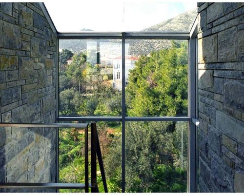 Ο σχεδιασμός της κατοικίας είναι εμπνευσμένος από το μινιμαλισμό, δημιουργώντας ένα κτίριο με απλούς όγκους και οριζόντια επίπεδα. Ο κεντρικός πυρήνας της κατοικίας έχει κατασκευαστεί από πέτρα.