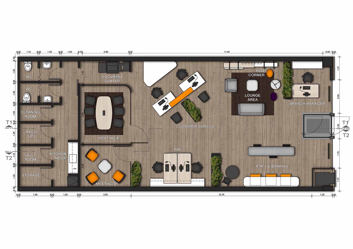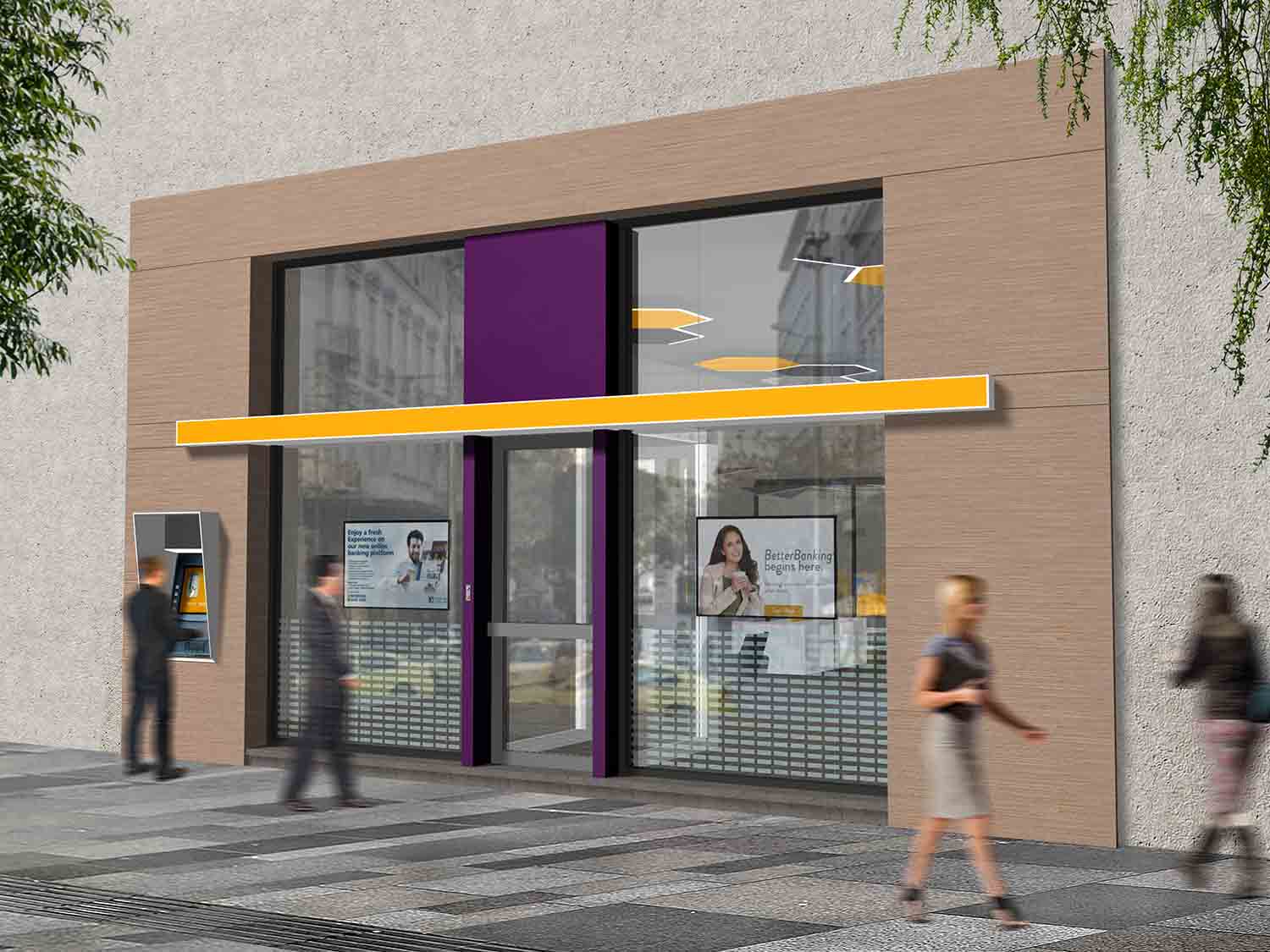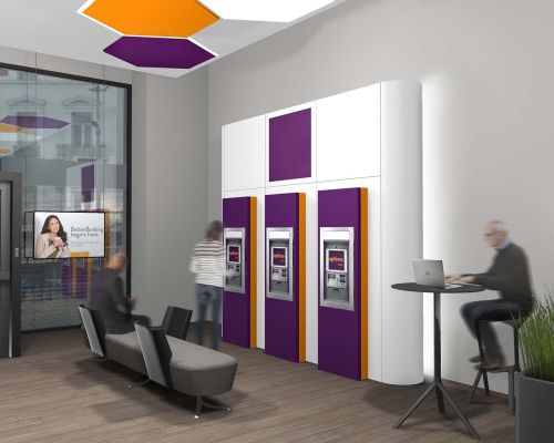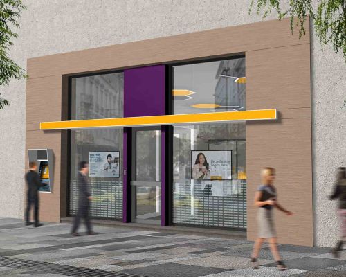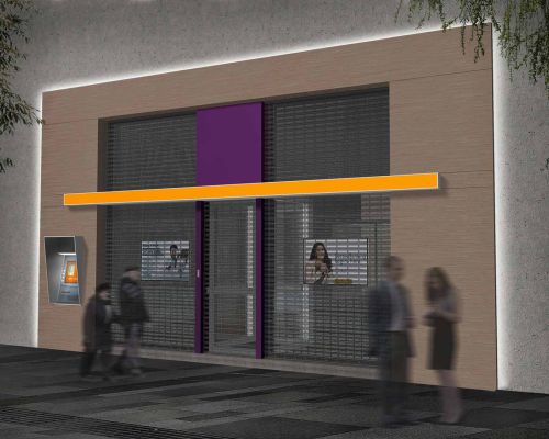 Η πρόταση αφορά στον αρχιτεκτονικό σχεδιασμό του πρότυπου καταστήματος μιας νέας τράπεζας που θα ενσωματώνει τα χαρακτηριστικά της εταιρικής ταυτότητας. Στόχος είναι να δημιουργηθεί ένα περιβάλλον φιλικό και οικείο που θα έχει στο επίκεντρο τον πελάτη. Είναι σημαντικό να δημιουργηθεί ένα μοντέλο ευπροσάρμοστο που να μπορεί να διαφοροποιηθεί σε κάθε κατάστημα χωρίς να χάνει τον χαρακτήρα του.
