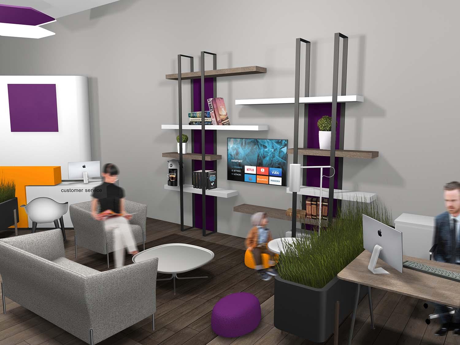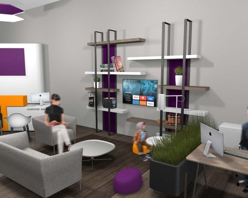 Το κατάστημα αποτελείται από δύο χώρους, τον κύριο χώρο λειτουργίας και επικοινωνίας με τους πελάτες και το χώρο βοηθητικών χρήσεων για τους υπαλλήλους. Ο κεντρικός χώρος διαμορφώνεται σε ανοιχτή διάταξη και περιλαμβάνει 6 λειτουργικές ζώνες κοινής αισθητικής, με στοιχεία προσαρμοσμένα στην λειτουργία του κάθε χώρου.